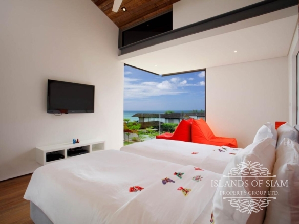 On the top floor of the villa are two splendid king-bedded master suites both offering fine ocean views and bathrooms with indulgent terrazzo tubs. To the rear of the master bedrooms are two guest rooms (both with twins that convert to king size beds). Their shared bathroom makes them ideal for families.