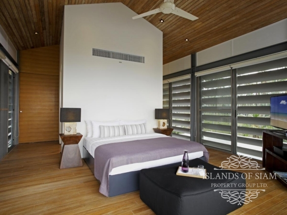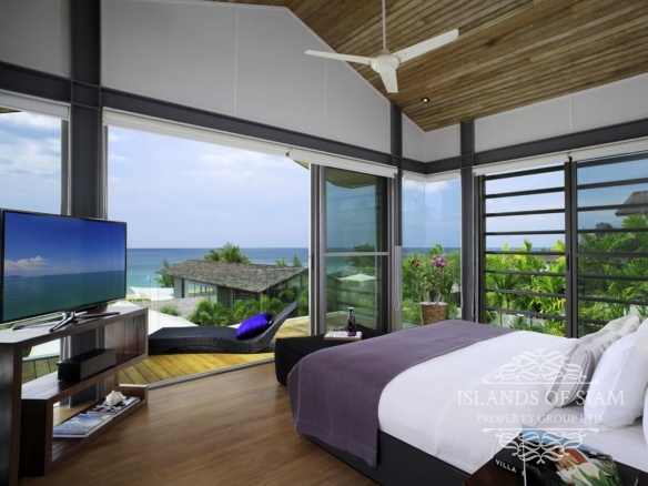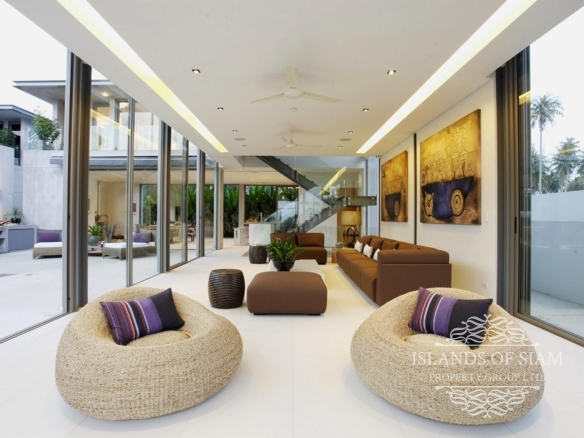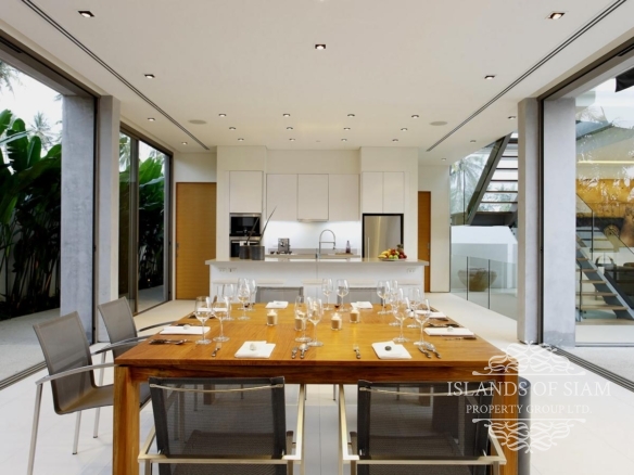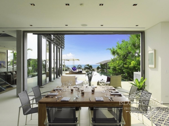 Steel, glass and timber form the ultramodern design of this slick four-bedroom villa overlooking the tranquil Natai Beach, just half an hour’s drive north of Phuket airport.