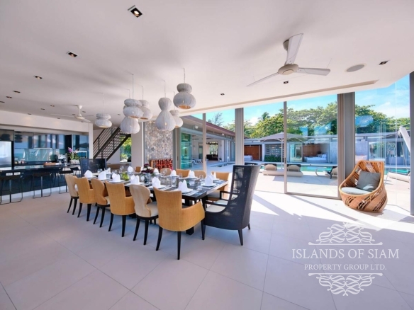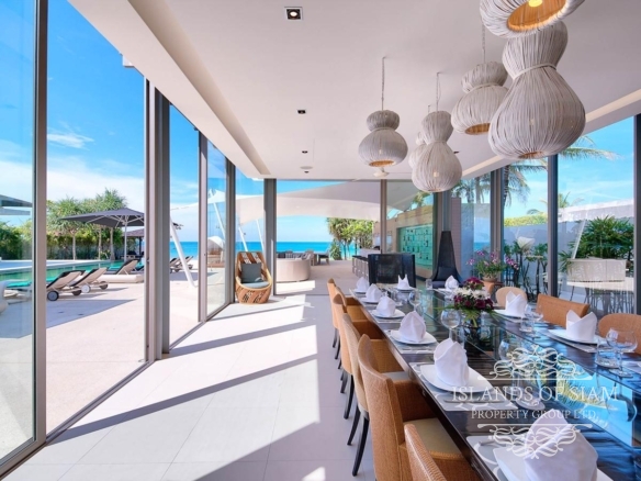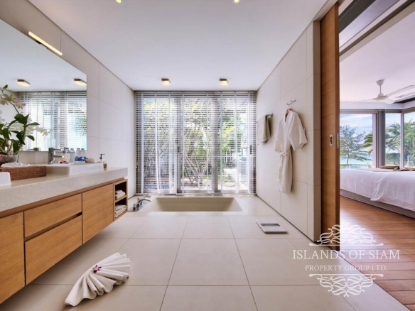 The ultimate tropical beachfront playground, 7-bedroom Villa Tievoli faces gorgeous Natai Beach – 10 kilometres of pristine sand less than half an hour’s drive north of Phuket airport. This superb modern villa is fully staffed and features multiple entertaining, lounging and dining areas. Suitable for extended families, weddings and events, the villa comes with a spa, sauna, steam room and beauty salon for on-call pampering, a 25-metre infinity pool and a large seafacing garden. Fill the days with paddle boarding or kayaking and catch the kaleidoscopic sunsets every evening from the sleek poolside bar.