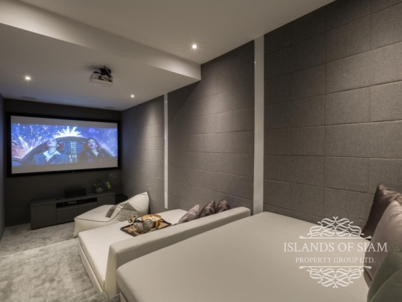 Back into the villa and behind the sunken sala is an enormous lounge. There are large, soft sofas, eye-catching décor, a 75-inch HD flat screen TV mounted on the wall, floor-to-ceiling glass doors and windows, electric shades and it’s fully air-conditioned. To one side there is also a seven foot pool table. The villa has a Sonos sound system with B&W speakers throughout the villa with four different zones each with independent volume control.