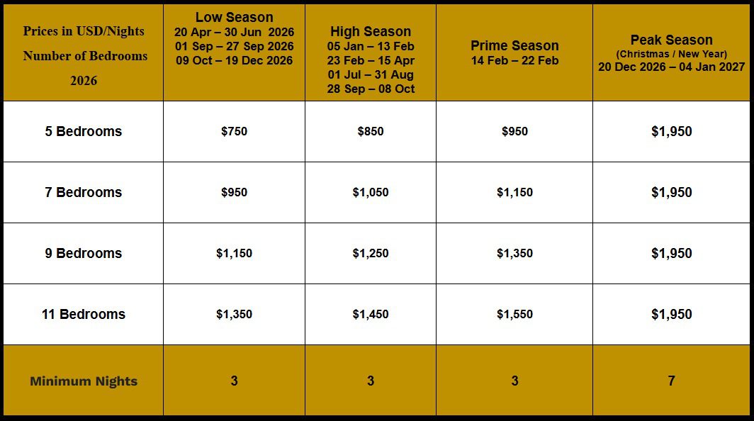 • Price Start from $ 1,350/Per night