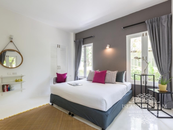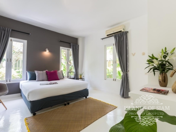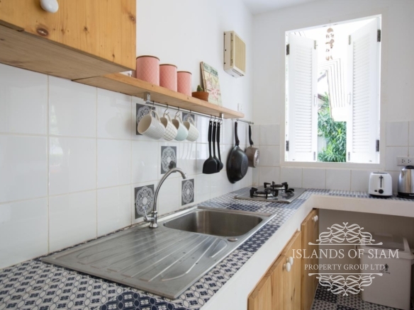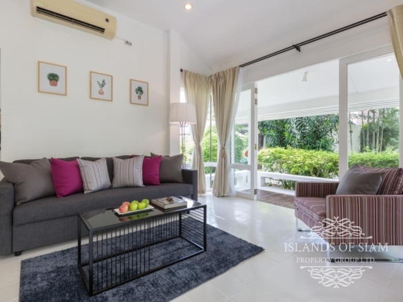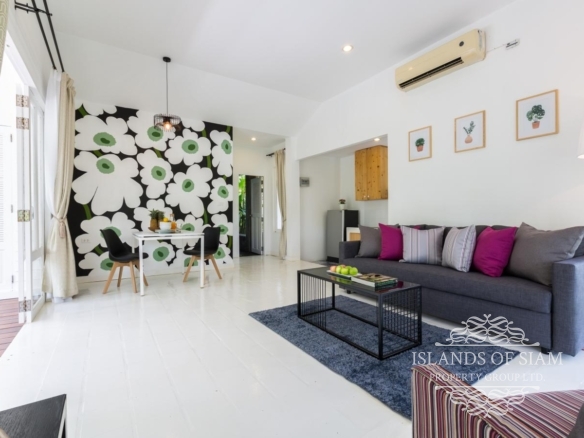 This cozy 1-bedroom beach house is conveniently located in Plai Laem, surrounded by tropical landscaped gardens.