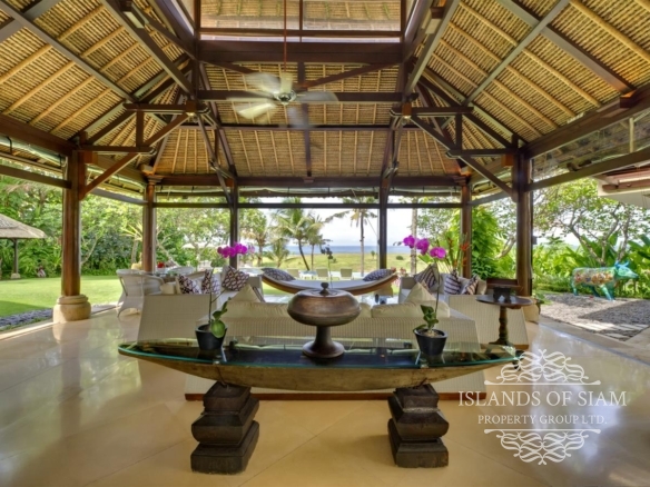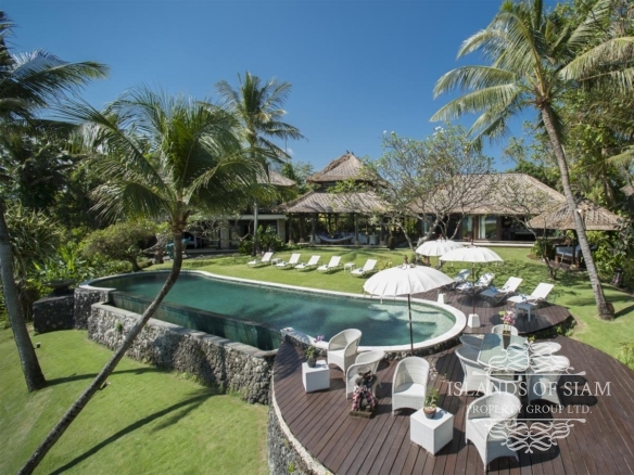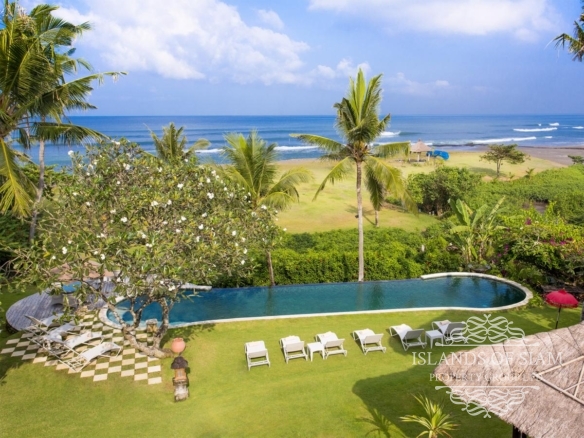 The beautiful traditionally styled Sungai Tinggi Beach Villa rests on the shores of a pristine black-sand beach in the peaceful rural village of Pererenan, on Bali’s southwest coast. Sungai Tinggi Beach Villa comprises a main four-bedroom villa and a secluded two-bedroom riverside guesthouse offering six bedrooms in total, a glorious open-sided living and dining pavilion, lush gardens and an 18-metre infinity edge pool.