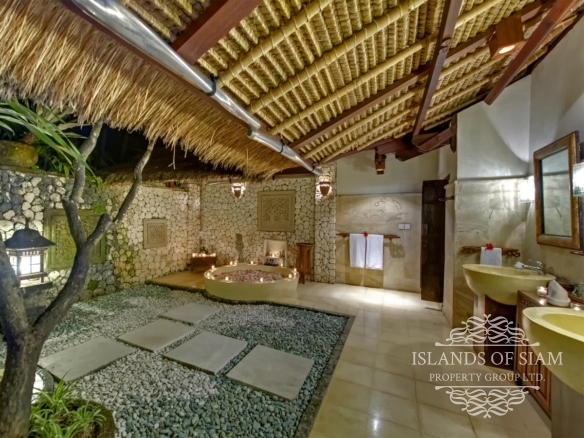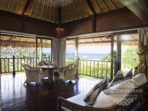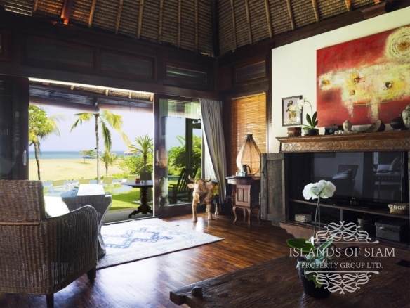 Sungai Tinggi Beach Villa feels like a celebration of Bali, and the owners’ love and passion for the island is evident in the fine selection of local materials and stunning collection of handpicked artworks that liberally adorn the property. Exotic timber floors, coral-limestone walls and alang-alang thatched roofs mix delightfully with antique artefacts and weavings to give the villa its distinctive style and ambiance.