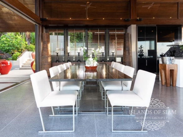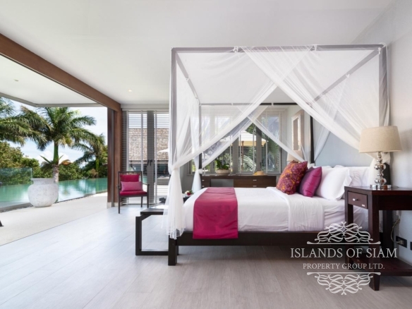 As you’re escorted through the main living pavilion onto the terrace, the view of a 25-metre infinity pool and the panorama of Bophut Bay and the islands beyond will literally take your breath away.