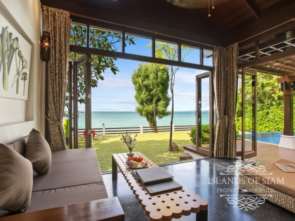 The Emerald Beach Villa 4 is a cozy beachfront home making it the ideal getaway for a family with young children. Located right on Laem Noi beach on the North coast of Koh Samui and close to the charming Bophut fishing village, it’s the perfect nook to spend your holiday. Designed as a vacation home within a private beachfront estate, this compact villa packs a punch with its combination of contemporary chic and traditional Thai influence.
