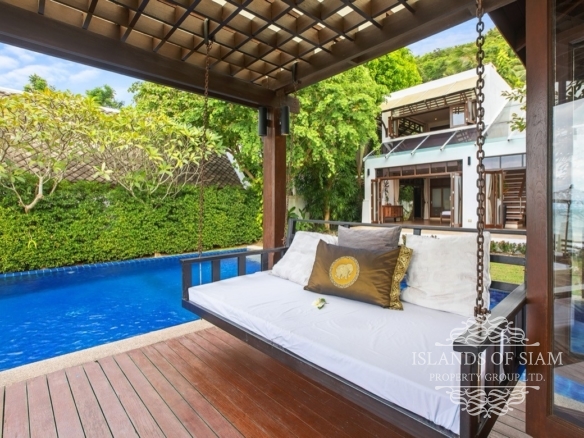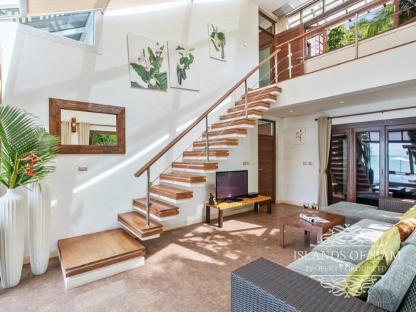 Featuring two bedrooms plus one children’s bunk room and a mezzanine gallery spread across two storeys, the villa comes dressed in rich wooden furnishings, neutral tones, and black granite and stone-tiled ensuite bathrooms with walk-in showers and a Jacuzzi bathtub in the master bathroom. It also boasts a lush tropical garden complete with manicured lawn, 5m x 9.5m L-shaped pool, private outdoor Jacuzzi, timber wraparound sun deck with a swing day bed, and of course, immediate access to the beach.