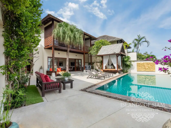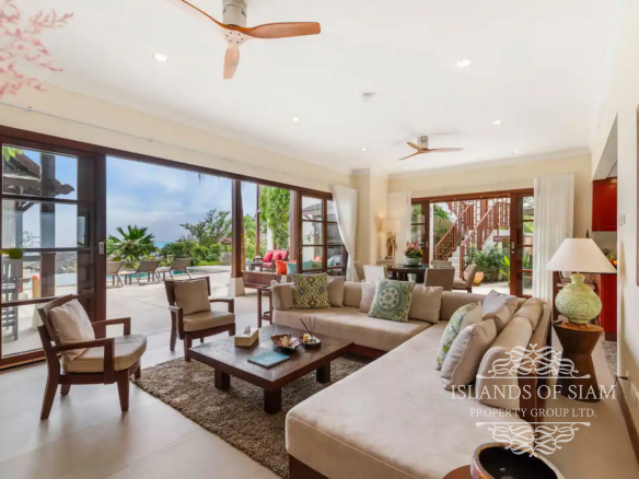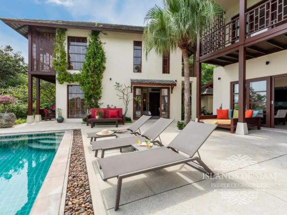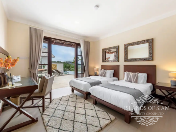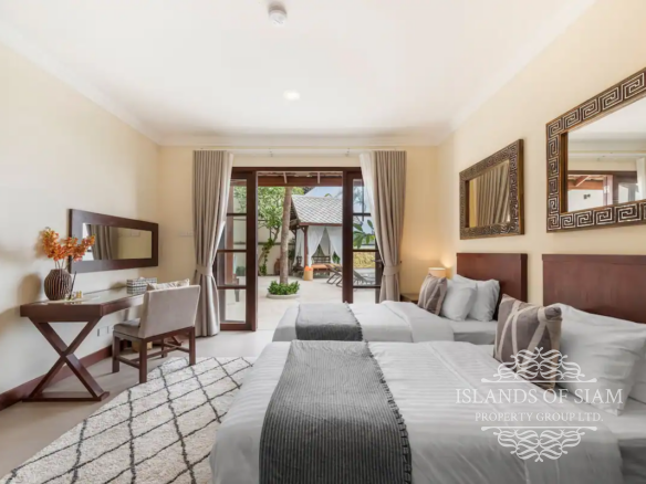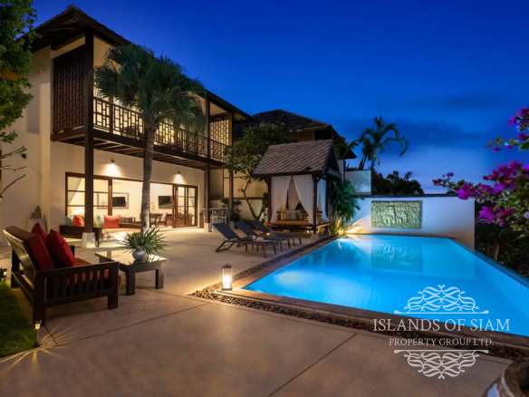 Experience luxury living at its finest in this exquisite 4-bedroom villa located in Choengmon, offering breathtaking sea views from every bedroom. Immerse yourself in the tranquility of the surroundings as you relax by the generously sized saltwater private pool. Convenience is key with a private car park right at the villa’s doorstep.