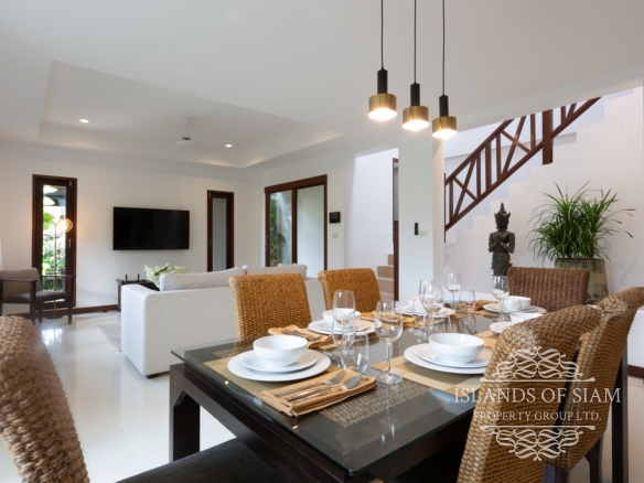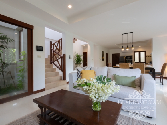 An Exquisite collection of four 3-bedroom villas, nestled within a serene tropical garden complex in the heart of Chaweng-Bangrak. Each villa boasts a spacious and newly renovated interior, offering ample living space and bright rooms adorned with many windows. The communal 12.6m pool invites you to unwind and soak up the sun, while the secured gate ensures your privacy and peace of mind.