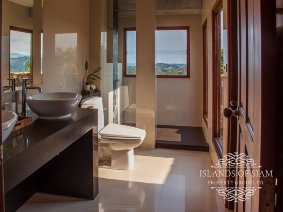 The spacious double master bedroom connects to the pool terrace and therefore benefits from breath-taking views. This attractive room also boasts an indoor and an outdoor bathroom en-suite, the latter with an indulgent tub and rain shower. A double and a twin guest room share a bathroom, making them ideal for a family, while a separate, second master suite features its own spacious bathroom with glass walled rain shower and skylight.