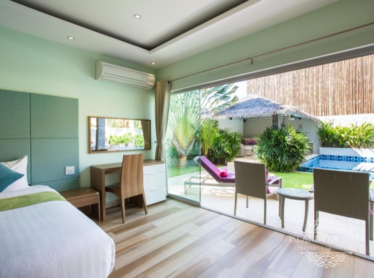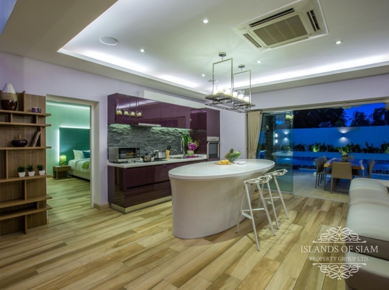 5-bedroom Villa Baylis is distinguished by its unique style, high-end quality and perfect location. It is situated in a gated villa development only 300 meters from paradise Ban Tai Beach. Amazing mountain views opening from its panoramic windows will remind you that you are on holiday in a beautiful tropical country.