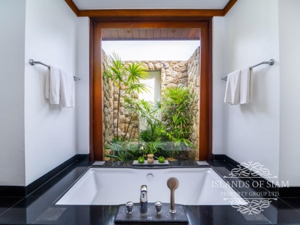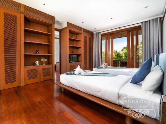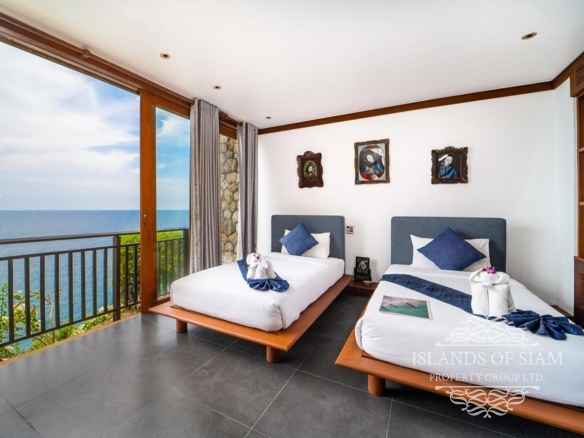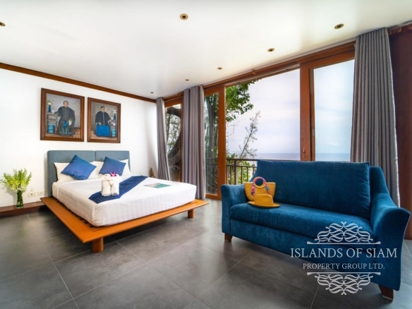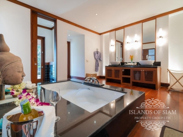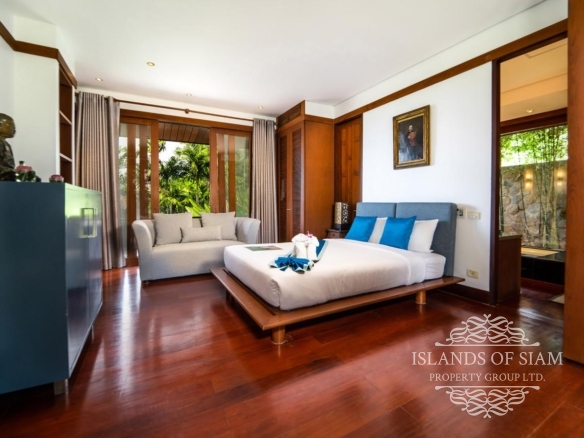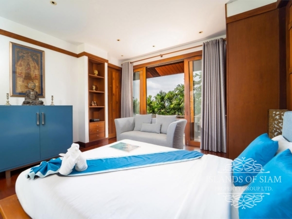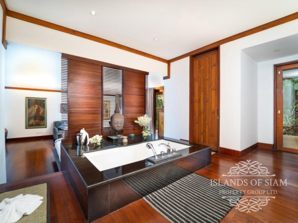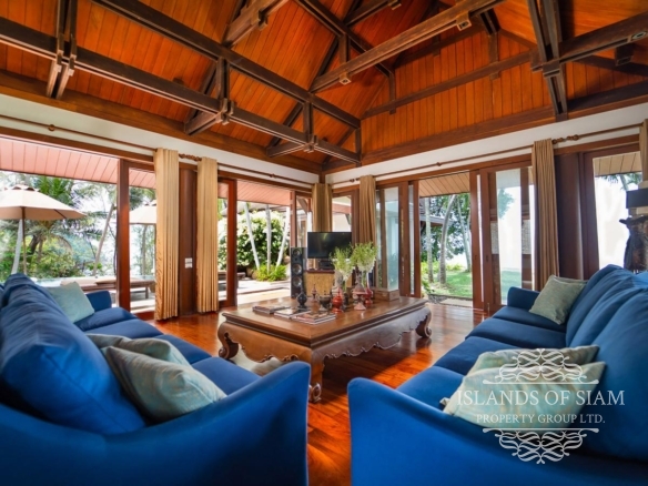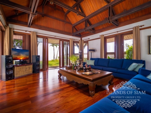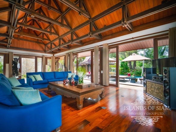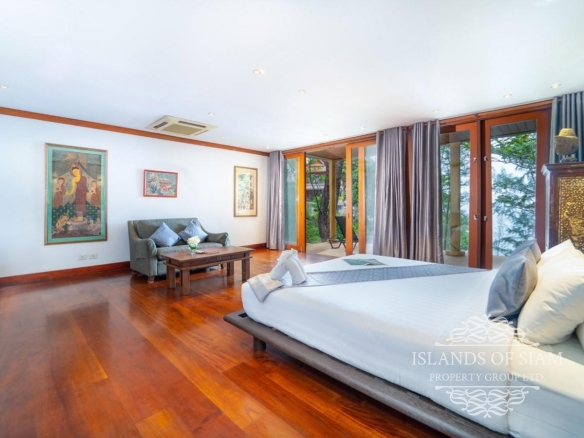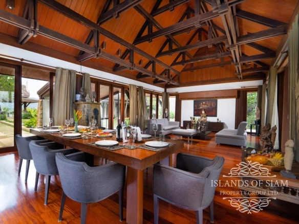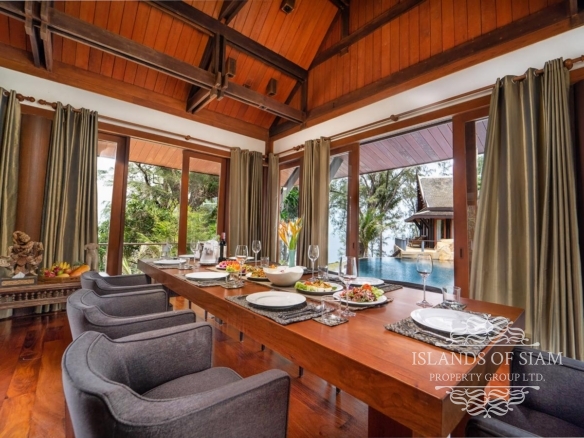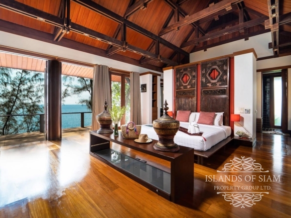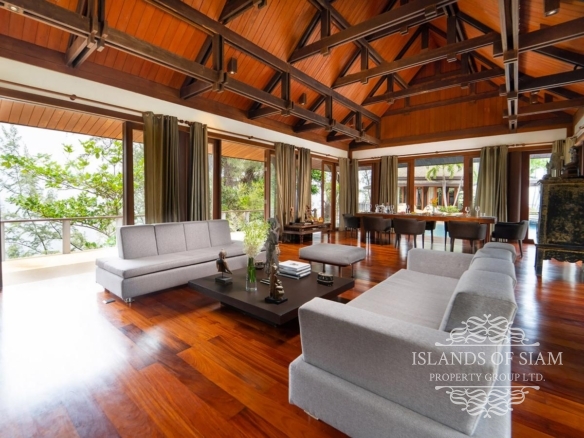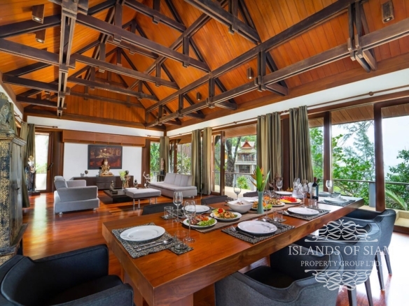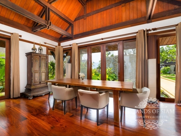 The villa follows a classic Thai design with four stand-alone pavilions, a mix of open-plan living spaces and private bedrooms, each one embracing the sea views. Brimming with character, it features pitched-roofs, floor-to-ceiling windows, and polished hardwood floors, making it a spectacular paradise retreat. The villa is decorated throughout with a unique collection of beautiful antique furniture, Asian art and artefacts, and intricate wood carvings.
