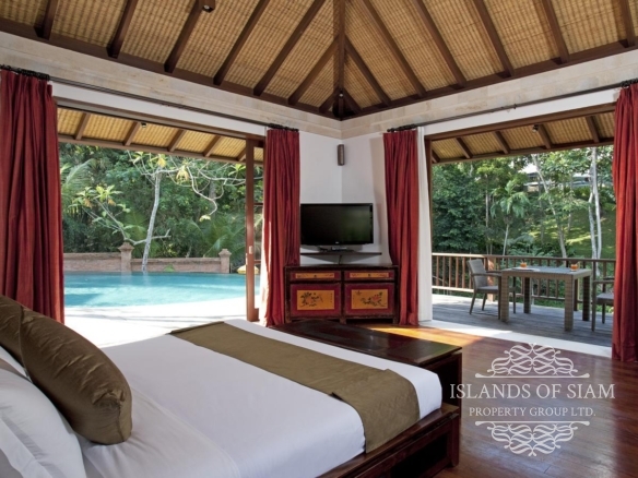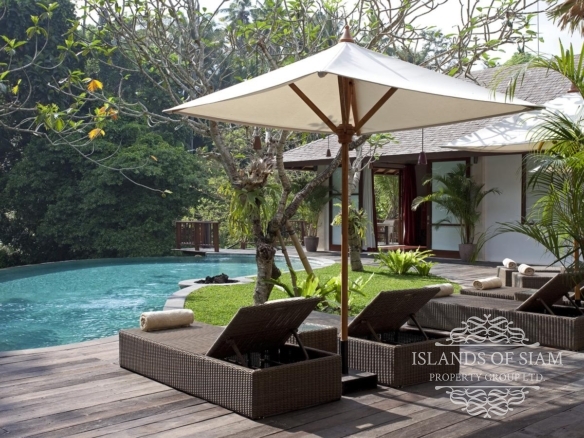 Designed over three levels, this elegant villa comprises four air-conditioned bedrooms, a large free-form swimming pool and ironwood deck, an open-sided living room and a more formal dining room. A poolside dining area and a choice of balconies and decks provide endless options for relaxation. The property’s stunning contemporary architecture is harmonised with dark timbers and a Chinese-themed decor, completed with antique furnishings and artwork throughout.