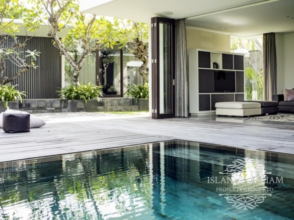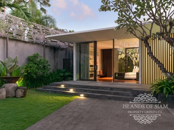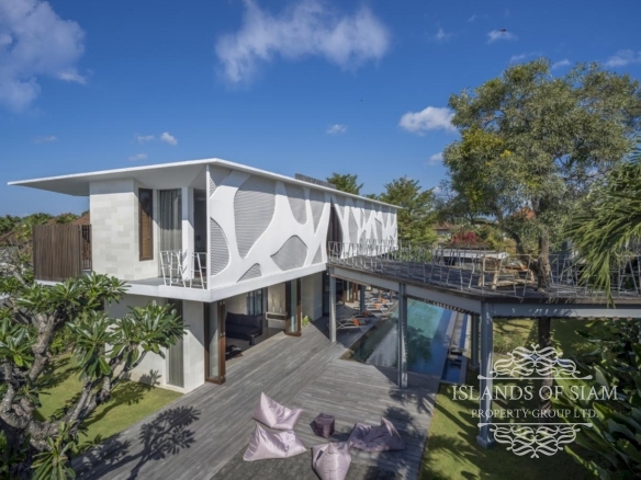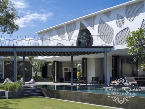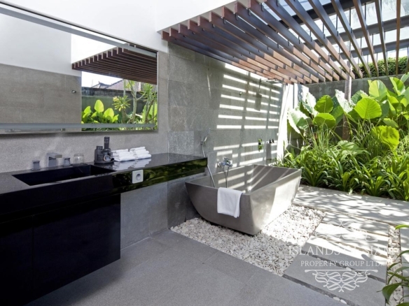 Four-bedroomed Villa Issi a dream come true for lovers of a modern, minimalist aesthetic. Located in one of the best addresses in Seminyak, on Bali’s south-west coast, this architectural masterpiece is a stunning example of east-meets-west, where contemporary design sits perfectly in an idyllic Balinese setting. The villa’s standout feature is a unique light-filtering metal ‘skin’ that wraps around the upper floor, providing cooling shade from the sun and an ever-changing ambiance as dappled shadows ebb and flow throughout the day.