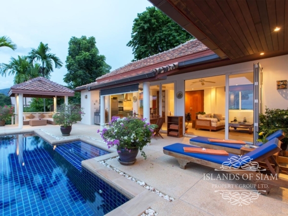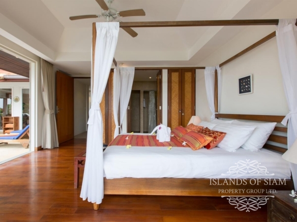 Three-bedroom, staffed Villa Kata Moon is surrounded by tropical gardens and overlooks Kata Beach in south-west Phuket. An inviting home for families and groups, it has a homely vibe and exceptional sea views from its pool deck. Italian aesthetics meet Asian influences in its interiors, while outdoor living areas like the 8-metre infinity pool and furnished sala, ideal for alfresco dining, tanning, and sunset sights, invite you outdoors. Set over two levels, the bedroom suites boast pleasing views, with the dreamy master suite featuring a four-poster bed with views that extend up to the mountain-top Big Buddha statue.