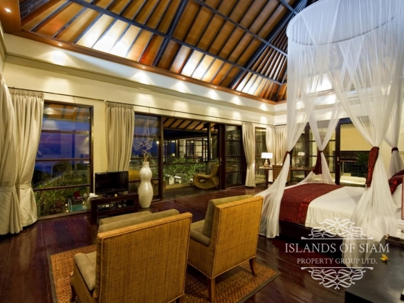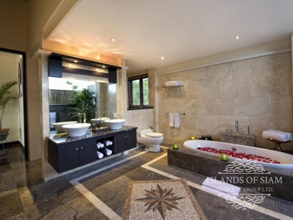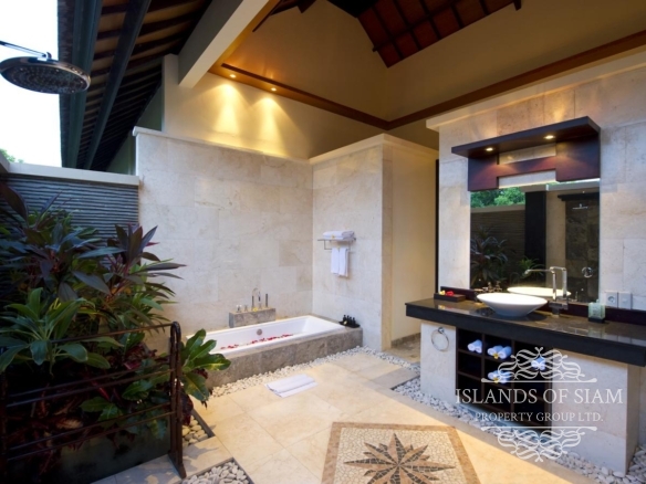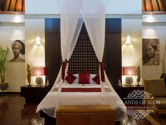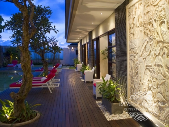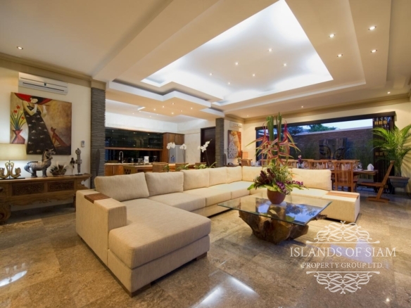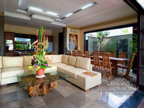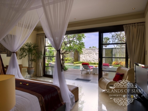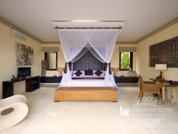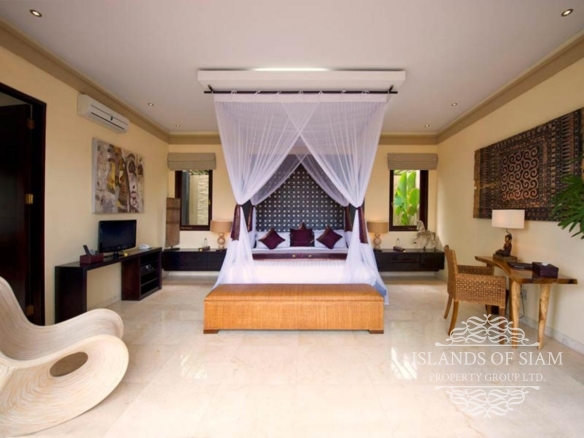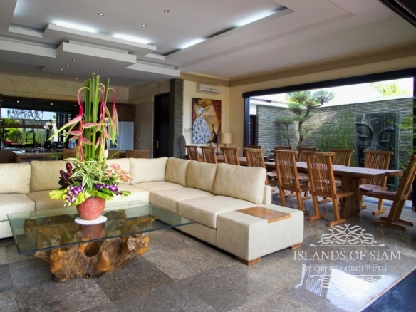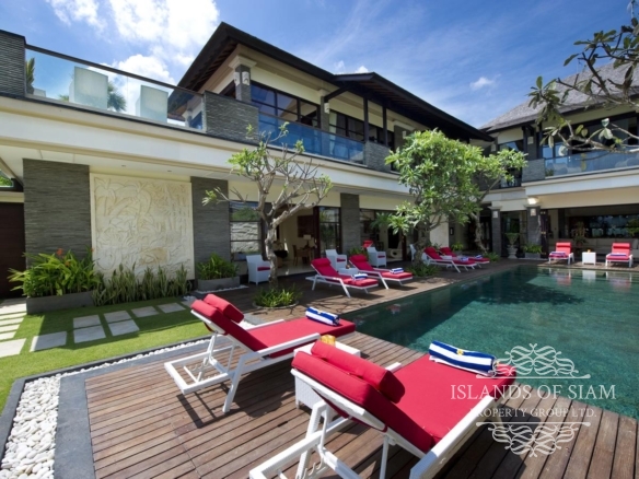 Villa LeGa’s large air-conditioned living room opens onto the pool deck and features a dining area furnished with a handsome wooden table for 12 and a fully-fitted kitchen. More comfortable lounging space can be found upstairs in the TV lounge, outside on the furnished terrace, and at the intimate rooftop deck above the entrance. Each elegant, spacious bedroom is furnished with a king-sized bed and fitted with a dressing area and semi-tropical ensuite bathroom. Upstairs, two master bedrooms enjoy ocean and sunset views while ground floor guest rooms face the pool. In the immaculate private walled garden, a 12-metre swimming pool is surrounded by a hardwood sun deck furnished with plenty of loungers, shaded by fragrant frangipani trees.