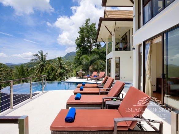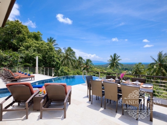 Villa Maphraaw is an exceptional five bedroom hillside villa with spectacular ocean views in Ban Tai on the North West coast of Koh Samui. The villa has a magnificent infinity edged pool, an impressive cascading water feature and large sun terraces.