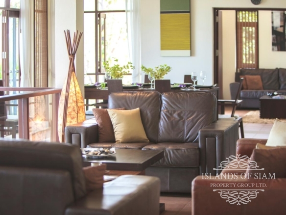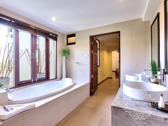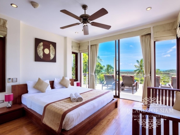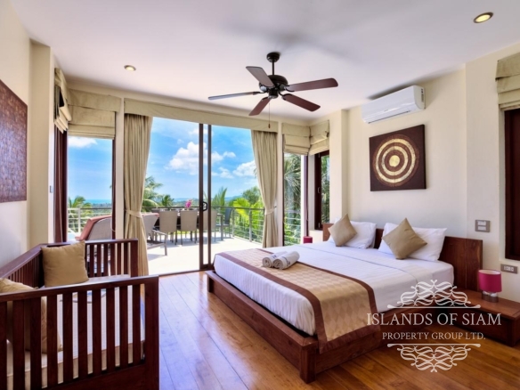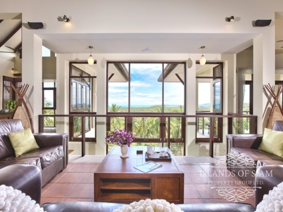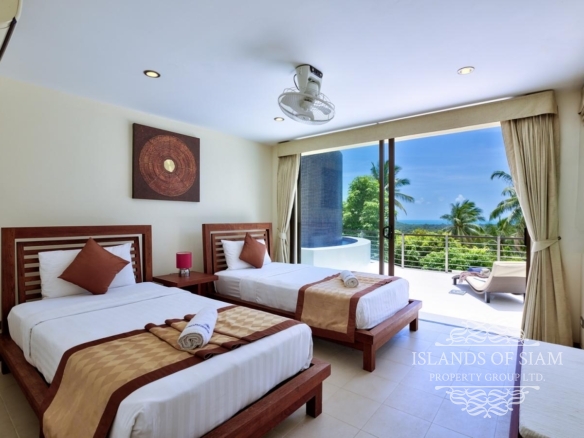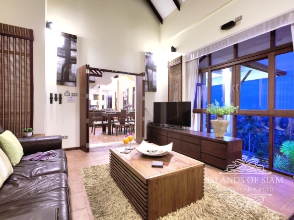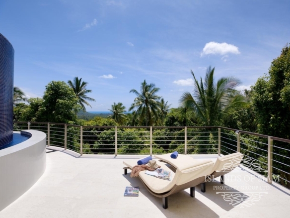 The spaciousness and innovative layout of the villa makes it the ultimate tropical retreat for large families and couples sharing who appreciate privacy as well as spacious and luxurious open plan areas that can be enjoyed together. The captivating wooded hillside location of this impressive villa provides privacy and seclusion. As soon as you step inside Villa Maphraaw it becomes apparent that this property has been designed, built and furnished to exceptionally high standards. A convenient large covered car port stands on the entrance level of the villa beyond which you will find captivating lush tropical gardens and a charming ornamental fish pond feature. What makes this 650sqm villa unique is its stunning interior design created from natural textures and tones, its unparalleled location, its jaw dropping views and its five spacious and comfortable bedrooms that all have en-suite bathrooms, four of which have fabulous views overlooking the tropical rain forest, ocean and island beyond.