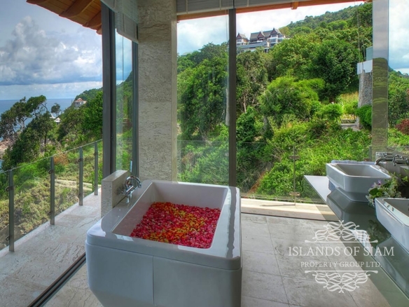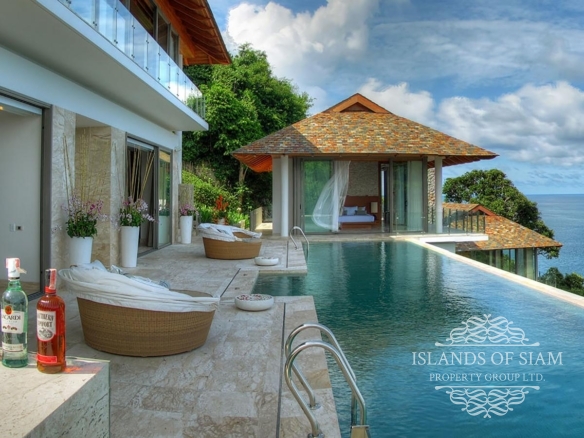 Unrivalled sea and sunset views set the scene for the five levels of ultra-fine living at Villa Minh, complete with six sumptuous sea-view bedrooms, all appointed to a high standard of comfort. Two elevators conveniently connect the villa’s multiple levels. Outstanding facilities include the ultimate home cinema and entertainment room, a games room, seaside massage sala and expansive poolside deck, complete with bar and barbecue areas, overlooking the Andaman Sea.