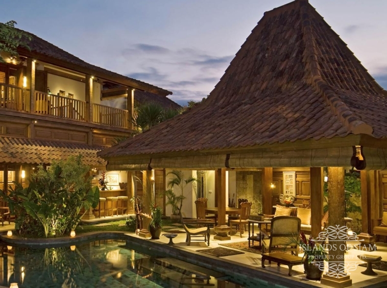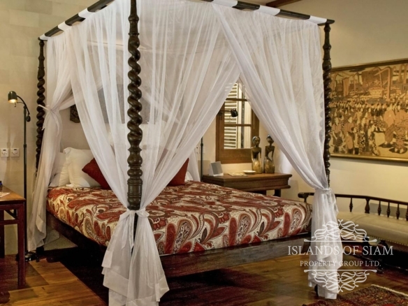 Villa Oost (‘East’) Indies is an ode to Indonesia, with its Javanese colonial-style design, long shady verandas furnished with plantation chairs, and bedrooms clad in solid teakwood. Evocative antiques and artwork from Indonesia and the Orient include elaborately carved wood panels, stone statues, hand painted silks and vintage travel posters. At its core, a 100-year-old Javanese joglo (traditional wooden house) provides an atmospheric living and dining area, surrounded by a lagoon-style swimming pool. A privileged rarity in this bustling corner of Bali, Villa Oost Indies also has a large lawned garden fringed with bamboo, pandanus palms and tropical foliage.