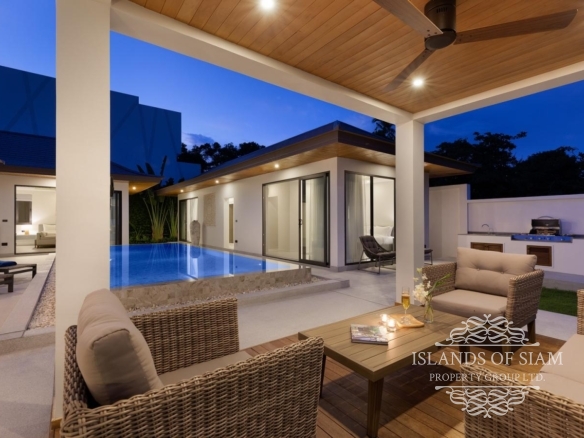 The brand new three bedroom Villa Paradise is well located within the Sunway Villas project just a short walk of 400m to the stunning Choeng Mon Beach. Along the way you will find an excellent selection of restaurants, bars, convenience stores, Thai massage shops and everything else you may need for an amazing and easy vacation on Koh Samui.