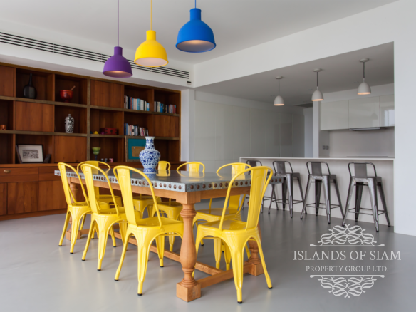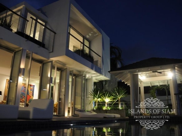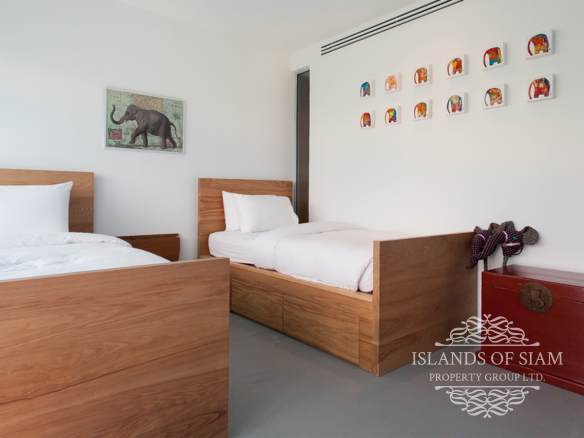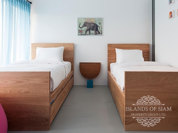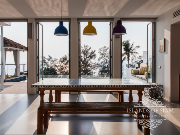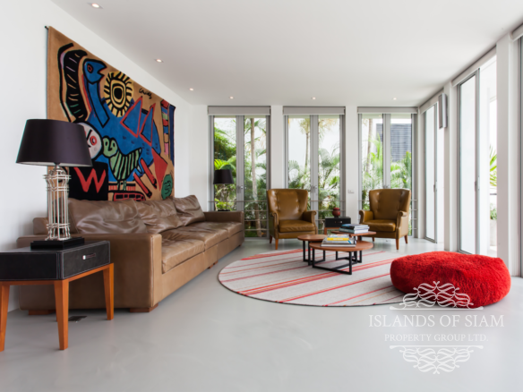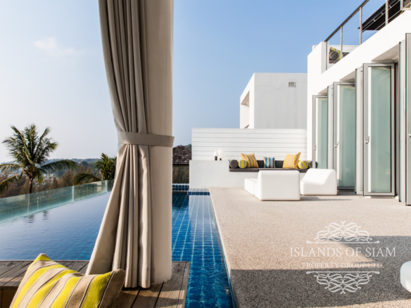This vibrant modern villa is located on a hillside above the southern end of Surin Beach, mid-way along Phuket’s scenic west cost. One of eight properties on an exclusive private estate, three-bedroomed Villa Sammasan is a great family choice for a tropical Thai holiday.
