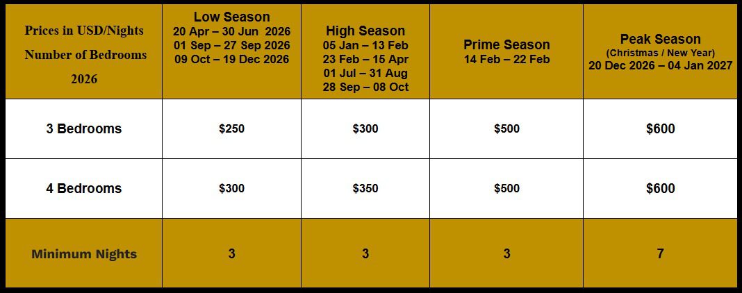 𑇐 Extra person charge @ USD 55/person/night (available upon request)