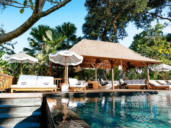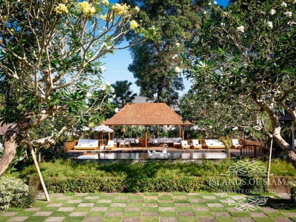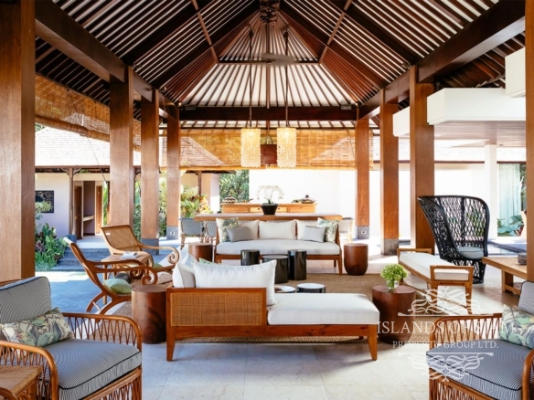 Embraced by two sacred streams in a landscape made luscious with tropical jungle and flowing rice terraces, this stunning, family-friendly, five-bedroom retreat is in the heart of Canggu, one of Bali’s hottest and most privileged areas.
