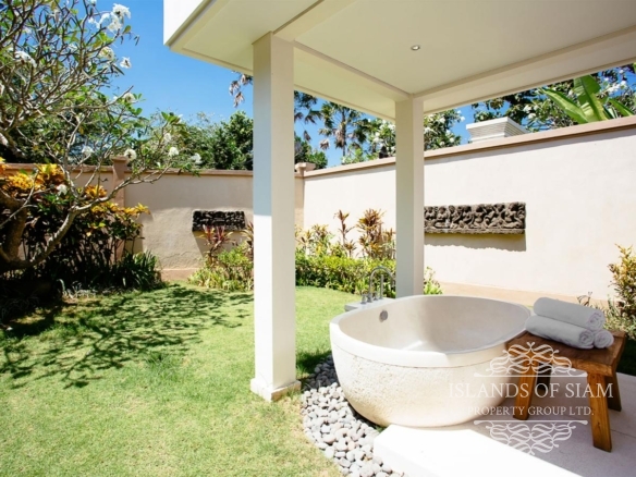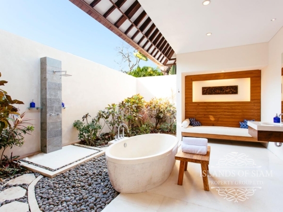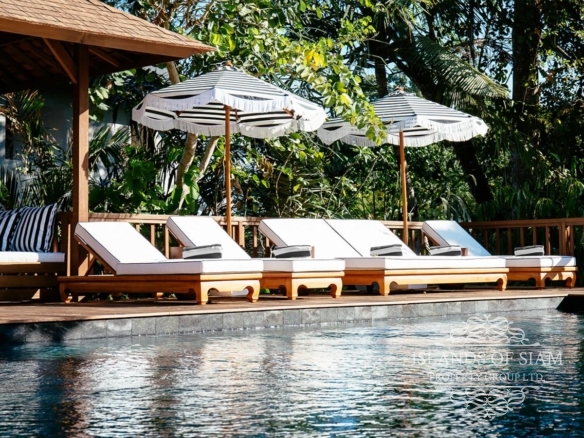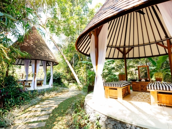 Villa Simona Oasis occupies almost 5,000 square metres of established gardens, and incorporates an exclusive spa in an exquisite cloistered corner where the holy streams converge. Treatments are carried out in private pavilions, behind elegant undulating white curtains. Listen to nature sing and bamboo whisper while relaxing in one of two extraordinary stone-carved baths set side-by-side high above the ground.