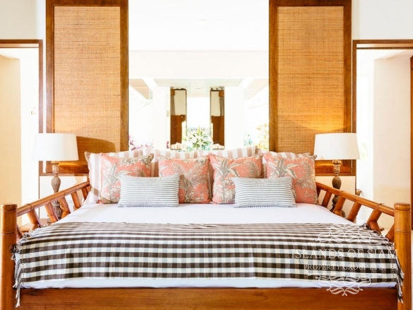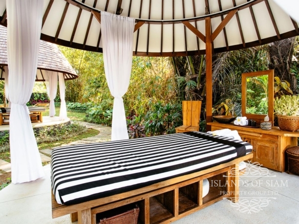 Romantic pathways connect the gorgeous bedrooms to each other and to the pretty bridge that leads to the spa. These hidden peripheral walkways help to sequester guests from the activities underway in the gorgeous open-air main living pavilion.