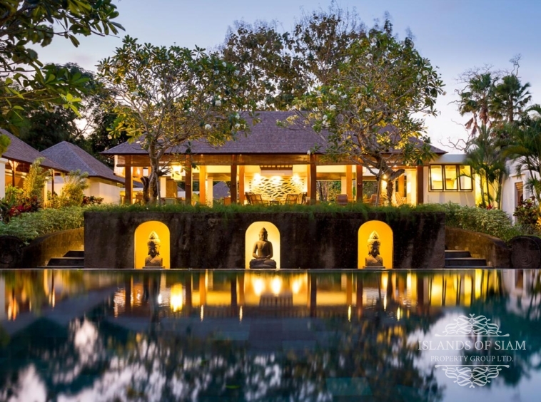 Embraced by two sacred streams in a landscape made luscious with tropical jungle and flowing rice terraces, this stunning, family-friendly, five-bedroom retreat is in the heart of Canggu, one of Bali’s hottest and most privileged areas.