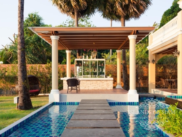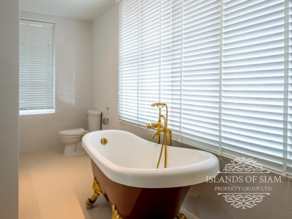 Boasting its beachfront location, Villa Swan is situated in a charming residential estate surrounded by mature parkland home to deer, swans, geese, bantam and many bird species, a true nature’s hideaway. The luxury two-storey villa offers a large swimming pool, elegant living area and expansive terrace for dining and lounging while enjoying the ever-present panoramic views of the calm waters of the Andaman Sea and surrounding islands. The different furnishings and room layouts create a distinctive character and ambiance. The top floor suite has an expansive private outdoor terrace, spacious indoor lounge and dining area, kitchenette and work desk as well as a luxury bathroom including a beautiful free-standing bathtub.