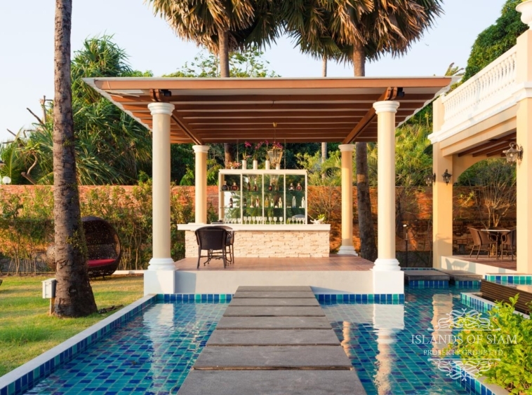 Boasting its beachfront location, Villa Swan is situated in a charming residential estate surrounded by mature parkland home to deer, swans, geese, bantam and many bird species, a true nature’s hideaway. The luxury two-storey villa offers a large swimming pool, elegant living area and expansive terrace for dining and lounging while enjoying the ever-present panoramic views of the calm waters of the Andaman Sea and surrounding islands. The different furnishings and room layouts create a distinctive character and ambiance. The top floor suite has an expansive private outdoor terrace, spacious indoor lounge and dining area, kitchenette and work desk as well as a luxury bathroom including a beautiful free-standing bathtub.