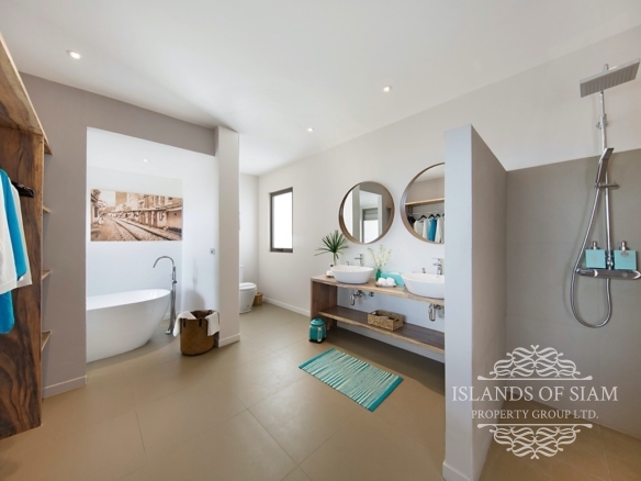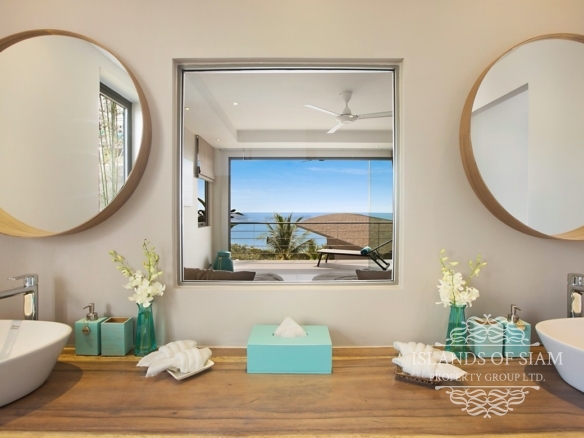 From your villa you can see downtown Chaweng, the expanse of Chaweng Lake, the small, off-shore island of Koh Som and all the way to Koh Phangan where the famous Full Moon Parties take place. Green hills and coconut groves surround the villa but it’s almost impossible to stop gazing at the deep-blue ocean waves and wonder what it would take to have this view every day.