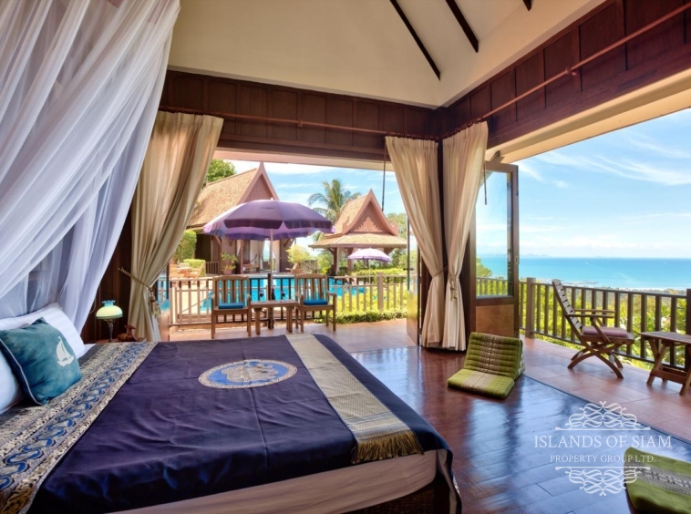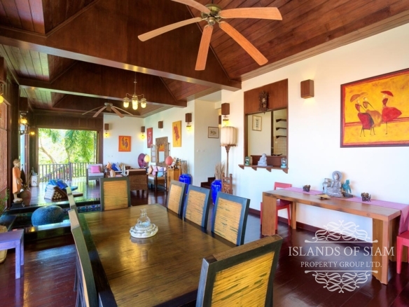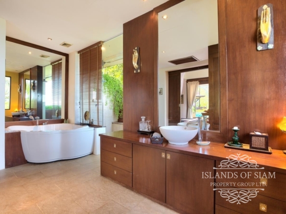 This amazing 5 Bedroom villa comfortably sleeps 10. The home’s Thai-style teak with a French fusion is apparent throughout, encouraging a sociable yet civilized arrangement that will amply satisfy and multi-family gatherings. With the picture perfect view you are sure to spend most of your time in the large swimming pool overlooking the ocean views