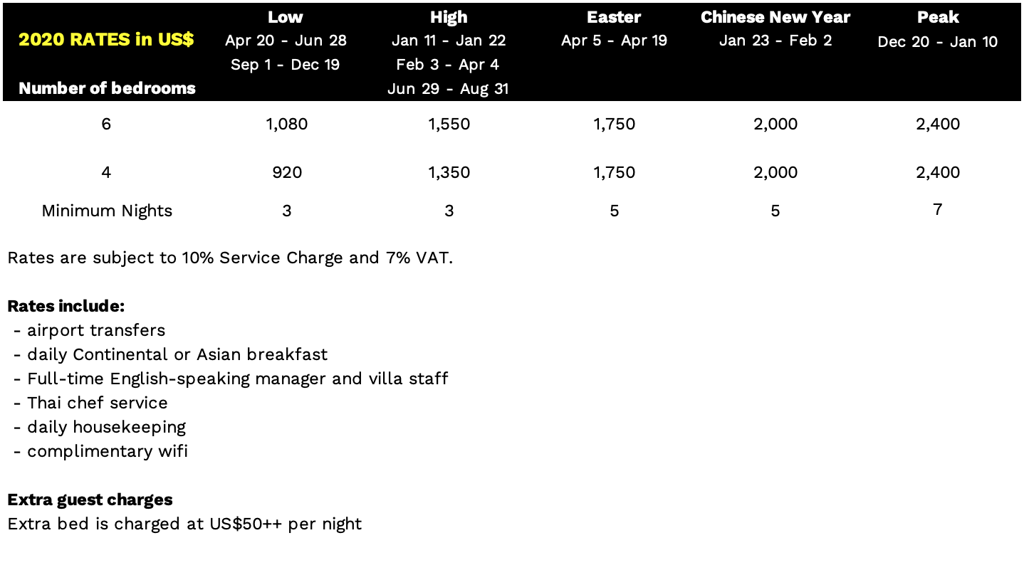 Villa Thansamaay is very secure as it has CCTV cameras around the grounds and there is a live-in couple who have separate quarters within the villa grounds so there is always a member of staff on site. There is a Villa Manager, a Chef, maids and a groundskeeper and they are most discreet and will respect your privacy.