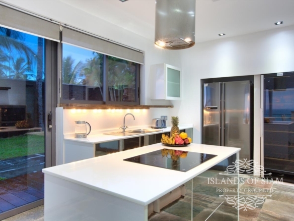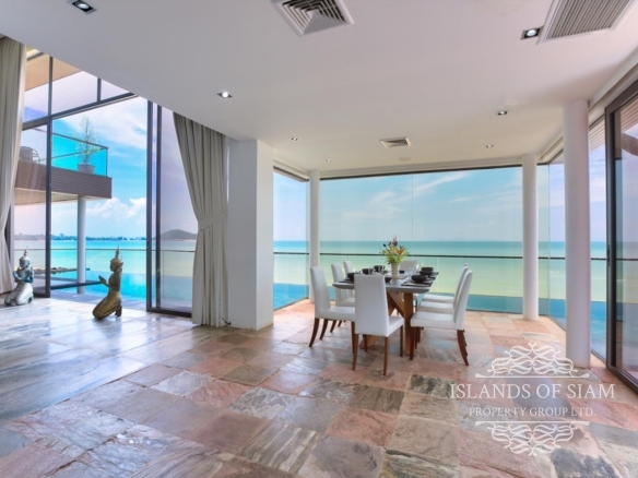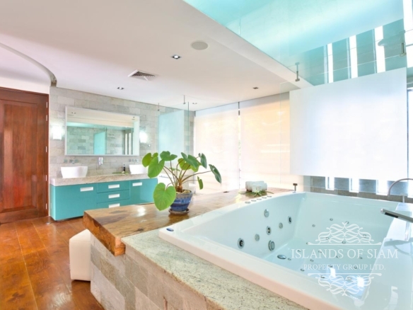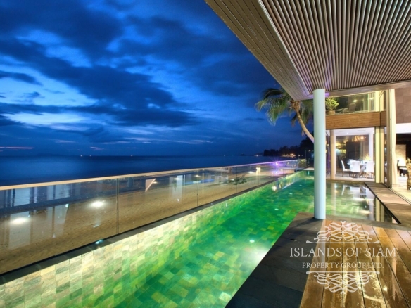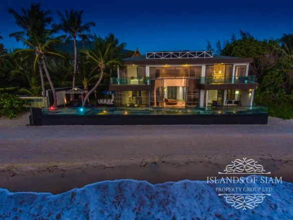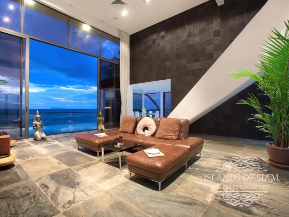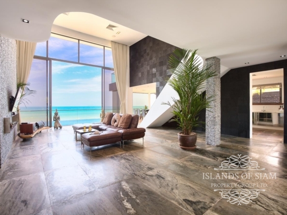 Dreams don’t come any higher than this opulent beachfront villa set in paradise. Villa U stands sentinel on the palm fringed white sandy beach. With fantastic views from amazing terraces, unforgettable tropical sunsets, a spectacular infinity pool and a luxurious interior makes this one of Koh Samui’s most sought after properties. Here you can enjoy a superb blend of tropical living with modern elegance in a calm, refreshing and relaxing atmosphere that has been created by innovative architectural design and a harmonious blend of modern and natural interior furnishings.