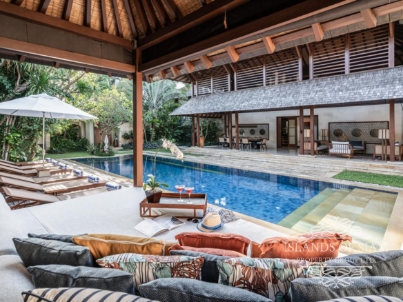 Those seeking a chic, centre-of-the-action yet peaceful location for their Bali vacation will find the fully staffed Villa Windu Sari has lots to offer. Newly renovated in 2021, this spacious, five-bedroom villa is securely set down a quiet cul-de-sac in a private community of villas in Petitenget, less than a kilometre from the beach, within walking distance of some of Bali’s best restaurants and bars, and a short taxi -ride from Seminyak.