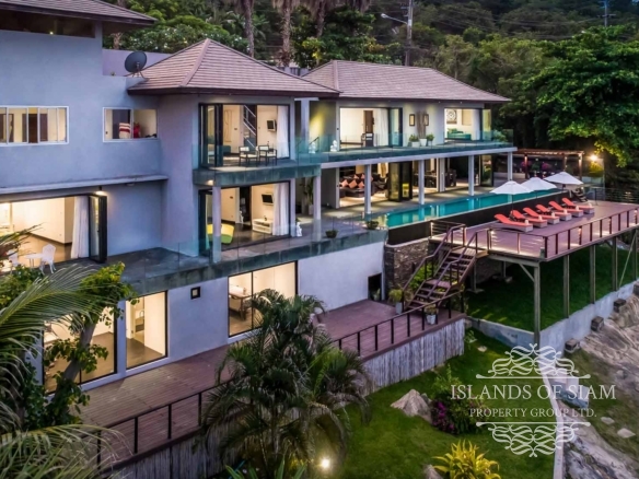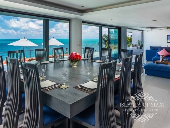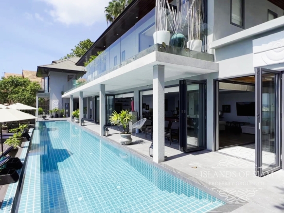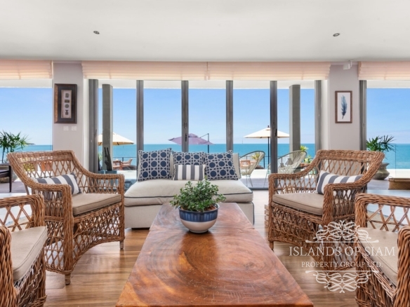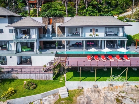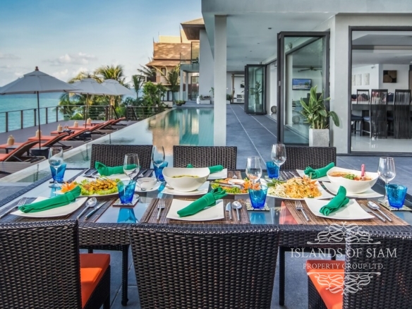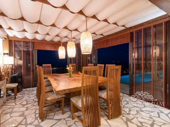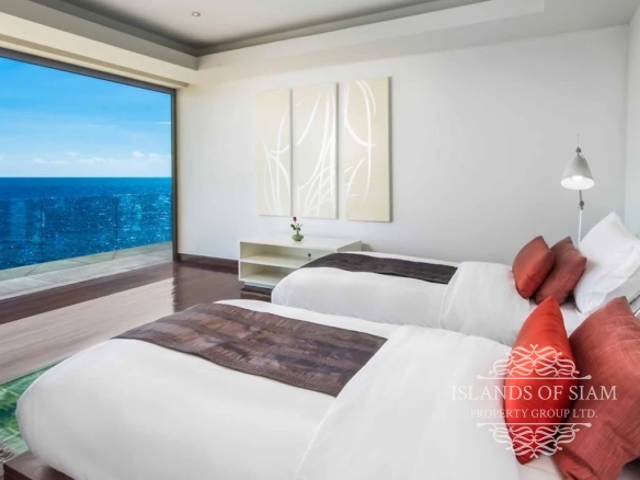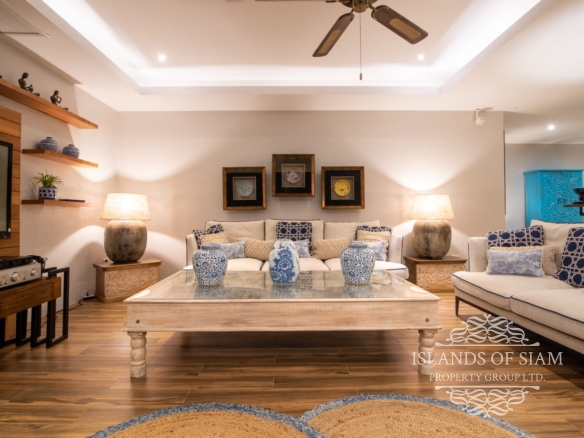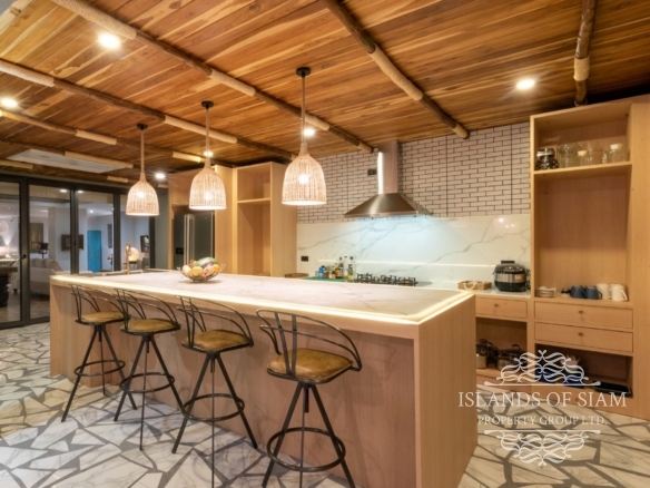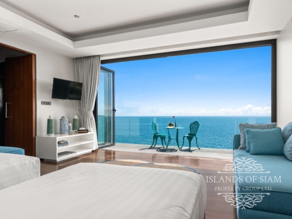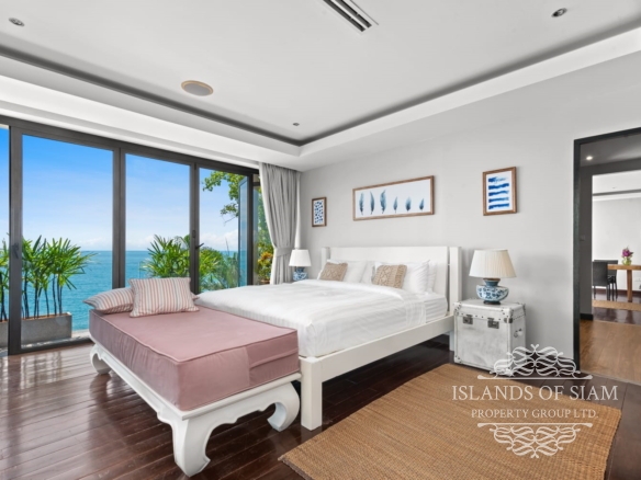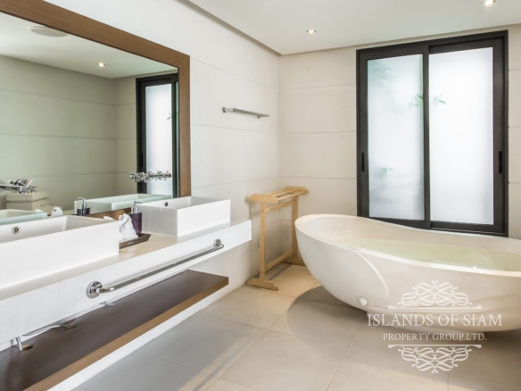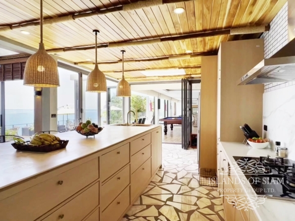 All three upstairs bedrooms offer impressive sea views and are connected by the full-length terrace. Elegantly appointed with a unique selection of modern Thai decoration.