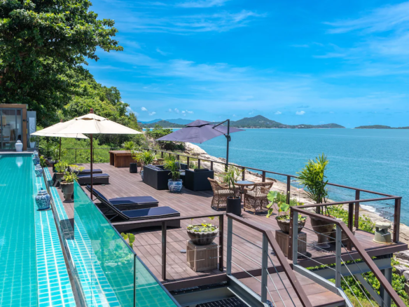 Experience true luxury in a seafront villa with 5-star service and stunning 180-degree sea views from every room. The villa has 5 bedrooms and 3 full-time staff members who will make you feel like you are in a very special place on your vacation.