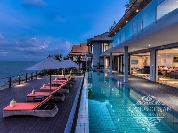 Located in Chaweng Noi, the villa is right on the water, just five minutes from the world-famous Chaweng Beach and its vibrant nightlife. Golf enthusiasts are just a 20-minute drive from the PGA Santiburi Golf Course. Fishermans Villa with its family-orientated atmosphere of bars and restaurants is 15 minutes away.